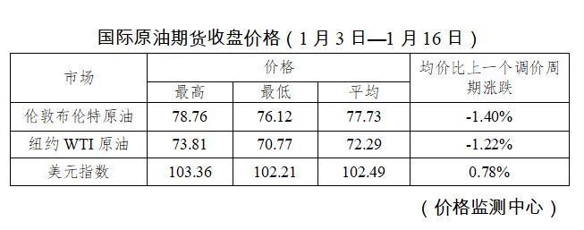 调价周期内,中东仓猝形势有所升级,众地爆发冲突,但墟市对原油需求疲软形成担心,油价承压运转。美英连结对也门动员袭击,一方面刺激胡塞武装增加红海袭击宗旨,另一方面也导致更众货船和油轮改道,加大供应链阻滞危害。但宇宙银行再次下调2024年环球经济增速预期0.2个百分点至2.4%,增速不断第三年放缓;美邦汽油库存增进至2022年2月以后最高,周度增幅创30年来最大,墟市对环球经济增速下滑、需求不振连接焦虑。别的,沙特下调2月原油官方售价,也加大油价运转压力。均匀来看,本轮调价周期伦敦布伦特、纽约WTI油价辨别比上个调价周期降低1.40%、1.22%。
