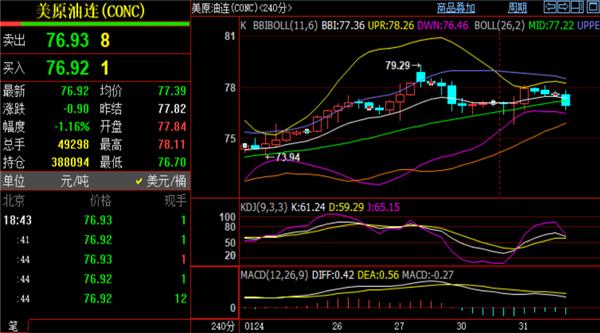 原油及时行情分解:本日是一月终末一个买卖日,周初提示的79.6-80压造区域阻力本周任然有用,只须价值没有实体冲破80闭口,任然另有回落危急。目前原油价值从4小时布林带中轨上方变动到中轨下方运转,及时现报价76.9一线身分酿成的维持界限,若美盘破位75.8,那么维持参考75闭口以及日线布林带中轨和日线一线,此点位算是今日的防守维持位。