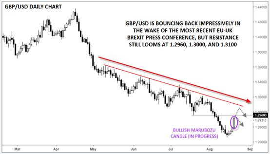 图外文字:英镑/美元于英邦脱欧团结信息揭橥会后强势反弹,但即将面对1.2960,1.3000和1.3100一线阻力。
