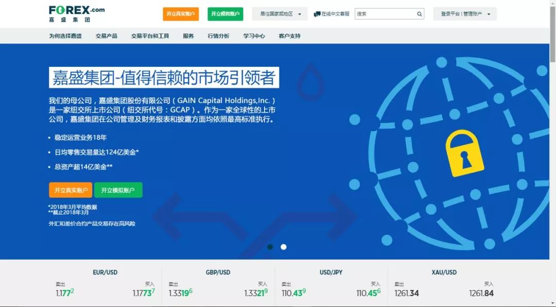 颠末了正在环球墟市近20年的耕种,嘉盛集团安详、庄重的品牌现象可谓深化人心。按照美邦商品期货营业委员会(CFTC)颁发的2017年11月Retail Forex Obligations申诉客户资产估量, FOREX.com嘉盛被评选为美邦最大的外汇经纪商,可睹其一哥的身分。