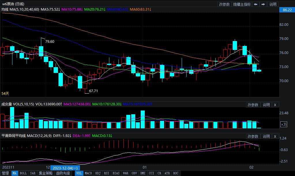 原油走势记忆:周五(2月2日),原油商场遭到宏大报复,WTI 3月原油期货全周累计下跌7.34%,布伦特4月原油期货全周累跌6.77%。跟着以色列和哈马斯之间停火商洽的实行下降了原油商场的地缘政事危急溢价,油价蒙受重挫,而且正在跌破症结的工夫撑持位后,跌势进一步加剧。