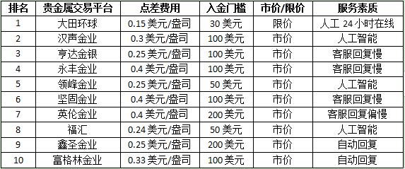 贵金属十大正路平台排名最新榜单!市情上大片面平台都是物价平台,限价平台很少。正在抉择平台的工夫除了要认准限价平台还要看平台的本钱、任职和入金门槛等。