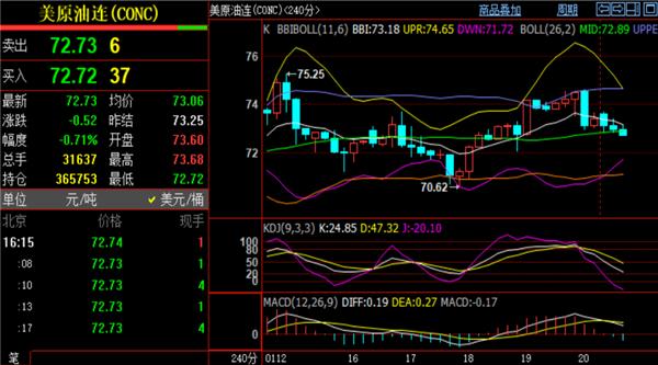 原油及时行情判辨:早间原油开盘价值与周评里的预测偏向涌现谬误,油价跳空低开及时现报价73.0一线。亚盘行情波幅有限,上下只要5个点动摇,刘铭诚选拔寓目。期货原油依照趋向线延长点来看,三角结尾料理再次收口,趋向线一线,刘铭诚预测今日油价会正在此区间屡屡争取直至收盘,操作上缠绕次区间高掷低吸即可。