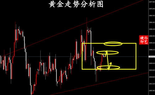 黄金昨日晚间空单小损出局。目前压造力照样正在2040。空头如故控造主场,黄金并没有冲破均线阻力,如故不绝看空,日线左近,行情一朝站稳还会去2046或2051左近,触及还可能空。日内高掷低吸。今日不看单边行情。