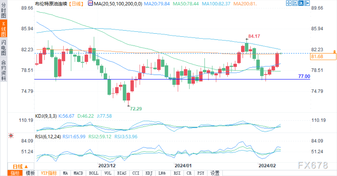 布伦特原油正在82美元合口之前测试200日简易搬动均匀线美元,但美元走强不妨会开首打压油价上行潜力,加倍是即将发表的美邦根基面数据一直跑赢大盘。撑持位出如今77美元。汇通财经APP讯——周五(2月9日),截至北京时光16:23,布伦特原油期货价值报81.67美元每桶,涨幅0.05%,WTI原油期货价值报76.38美元每桶,跌幅0.10%。