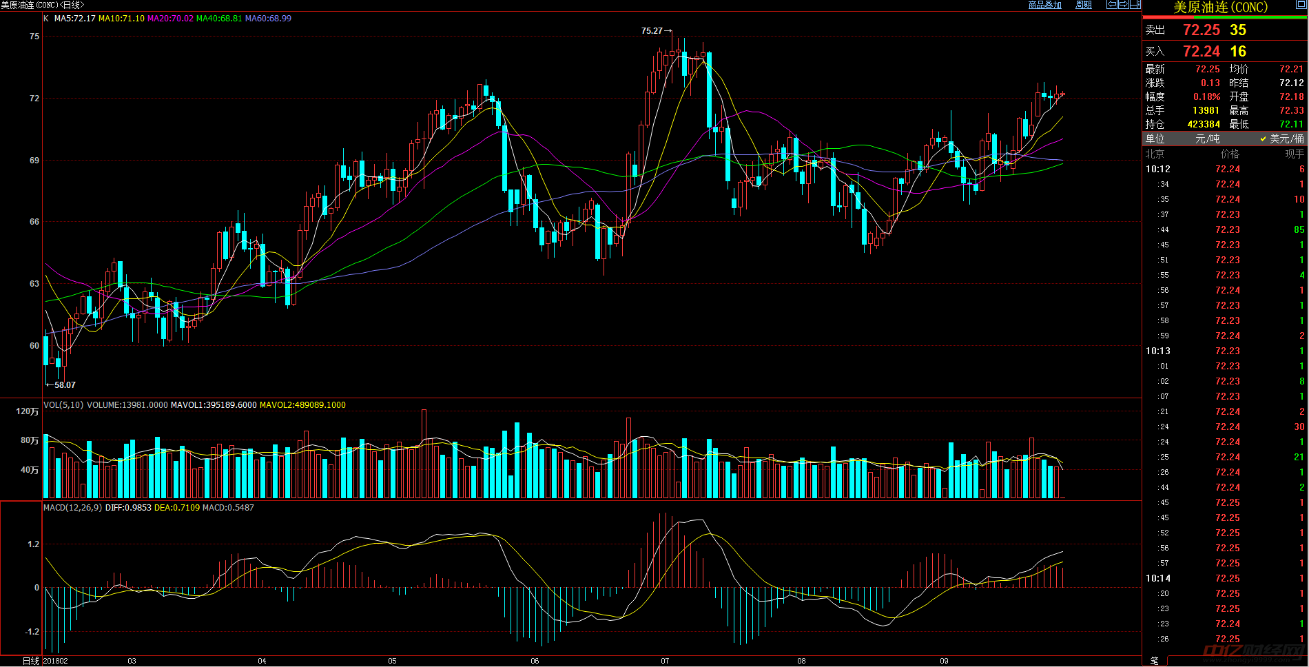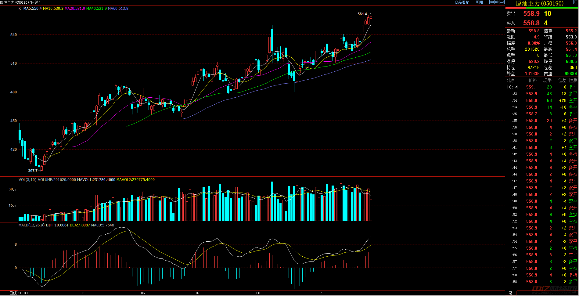 美原油主力日线.美原油:日线图上,K线日)美原油主力小幅上行收出一根弱实体阳线,盘面上行势弱阻力较大,收盘价站于MA5上方;均线平缓下行,中短期商场照旧看涨为主,恒久商场持看空心思;成交量来看,上个营业日商场成交缩量,投资者扔空营业日为主;DIFF、DEA正在0轴上方金叉向上运转,红柱裁减;归纳来看,短期盘面上行驱动削弱,美原油主力或有行情回调趋向,但众头商场仍处主导职位,后市全体撑持高位波动运转的概率较大。