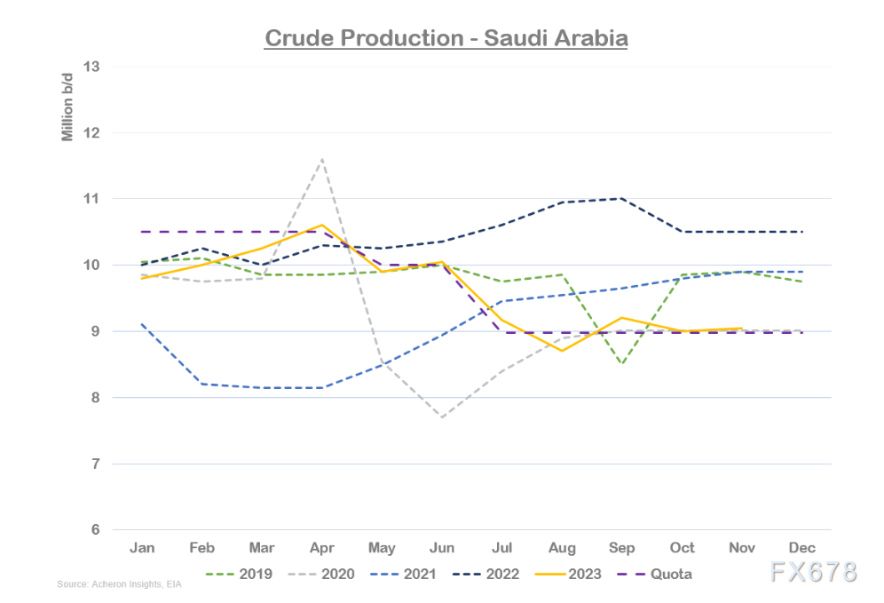 其余,沙特和欧佩克+仍努力于通过来岁第一季度延伸减产刻期以及更好地履行减产来抵消非石油输出邦机合产量的伸长。