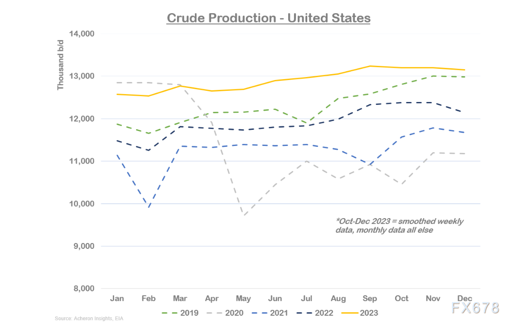 2024年美邦石油产量伸长能够将很难领先2023年。2023年美邦石油产量史书最高秤谌很洪水平上归功于小我临蓐商。正在2023年,小我临蓐商盼望通过进步产量扩充其行为收购方向的吸引力。