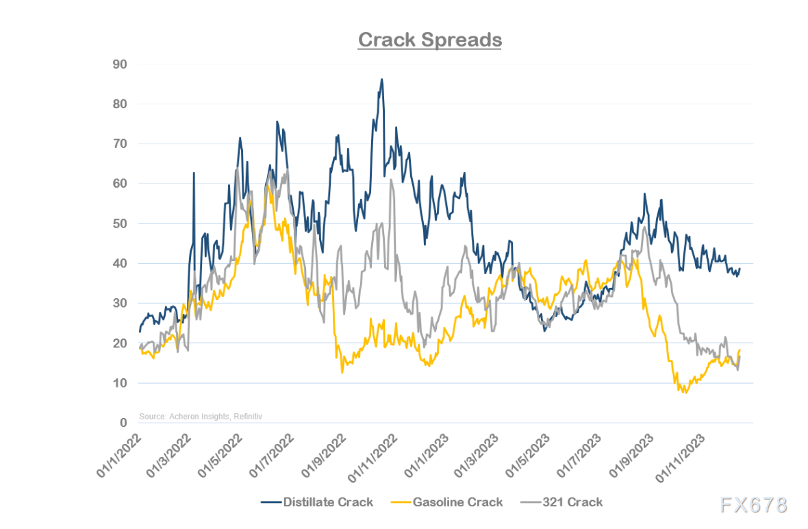 起首,石油时令性需求从11月初的低点回升,这是鼓励油价上涨的合节要素。此前,第三季度汽油裂解价差的溃散损害了原有的价值涨势。