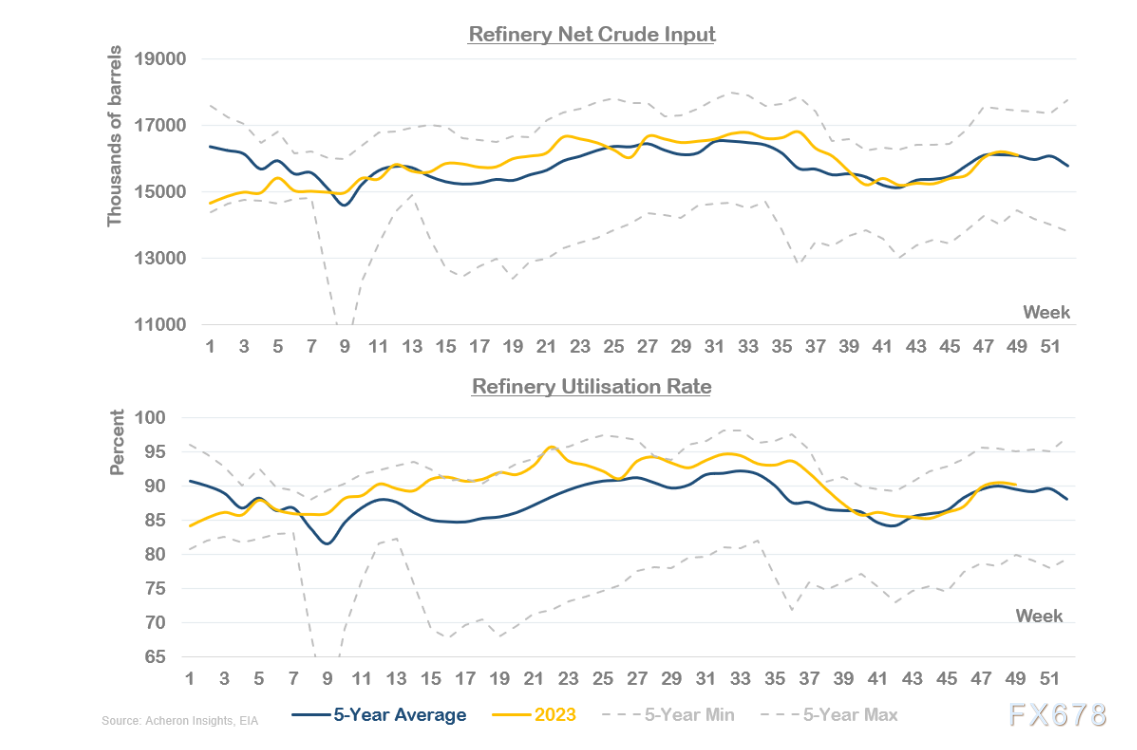 数据显示,比来几周石油炼油厂含糊量和愚弄率向来正在上升。汽油裂解率上升(除了仍正在上升的柴油裂解率除外)有帮于驱使炼油厂不停扩充原油含糊量,进步潜正在利润率。