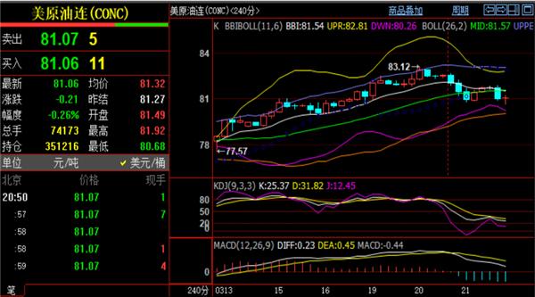 原油及时行情剖释:期货原油高位盘整,行情走势的涨跌没有延续性,及时现报价81.6一线小时图形渐渐收口,小时线区间,如果破位再伸张到4小时上下轨区间83-80.7对于,届时向上偏差着重83.8本周高点,向下偏差着重80整数合口,集体缠绕次区间高扔低吸筑仓即可。