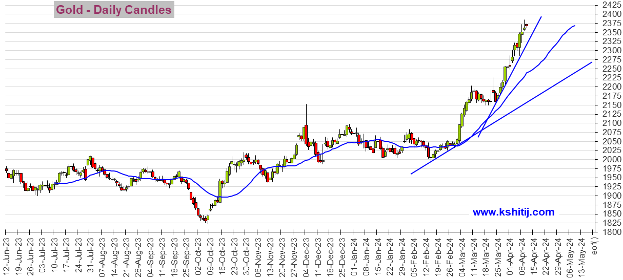 COMEX黄金期货周二收涨0.89%,收报2372.00美元/盎司,盘中曾触及史册高位至2384.50美元/盎司,自3月28日以后每天创史册新高。