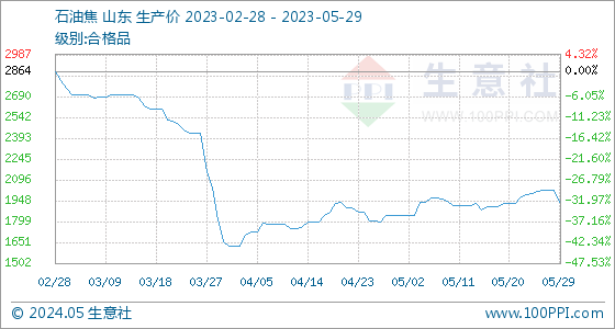 5月20日生意社石油焦基准价为1560.00元/吨(05-20 08:30)