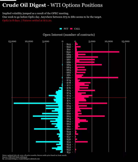 于是他们必要置备高贵的原油看跌期权以对冲期货众头部位的下跌危害,那么期权做市商也乐于借此原油看跌期权价值慷慨的机遇再三卖出大方看跌期权,测试取得权力金固定收益(比如近期WTI原油行权价为70美元的看跌期权数目伸长很速)。