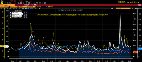 通过切磋芝加哥生意所的原油动摇率惊惶指数OVX咱们可能浮现,原油的动摇率惊惶指数OVC依然再次欺压惊惶阈值40大合。