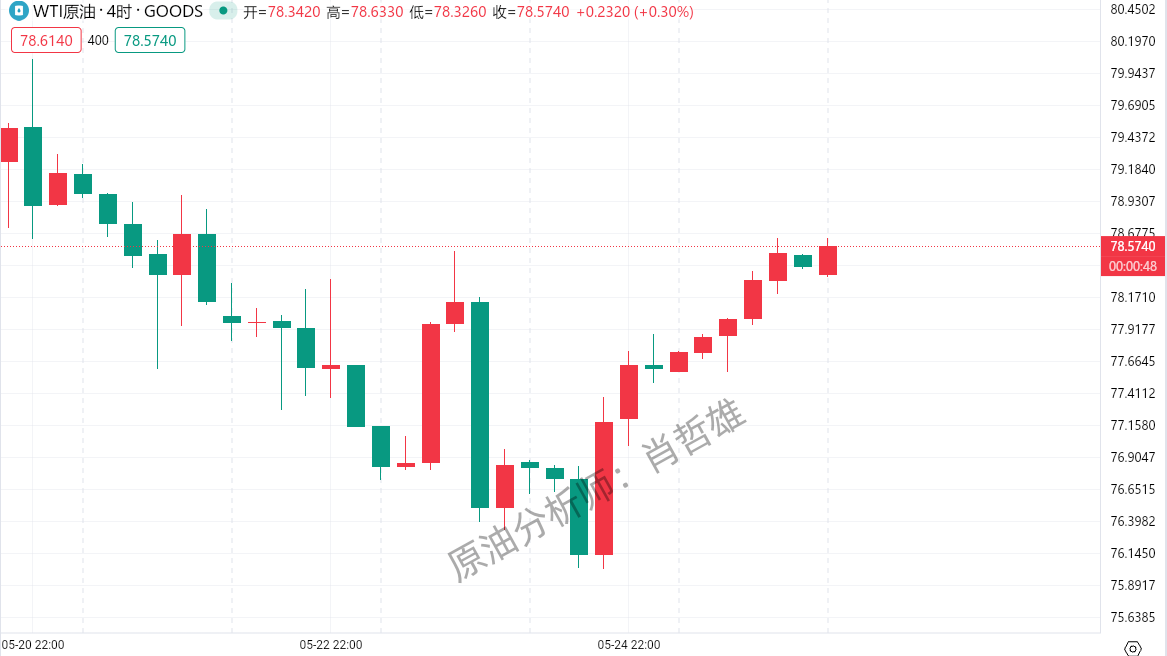 原油周一上涨1%,交投淡静,因英邦和美邦适逢大众假期。上周油市低迷,受累于正在通胀一连的处境下对美邦利率前景的忧虑。7月布伦特原油期货周一收涨1美元,或1.2%,结算价报每桶83.12 美元。交投更为活动的8月期货上涨1.04美元,报82.88美元。美邦原油期货周一上涨0.93美元,报78.65美元。上周布伦特原油期货下跌约2%,美邦原油期货下跌近3%,此前美联储集会记实显示,借使以为闭于职掌顽固的高通胀有需要,少少官员甘心进一步加息。昨日油价工夫面正在震动交投中迎来众头震动回升反弹,亚欧盘价值小幅回踩下探企稳于77.7闭口震动走强,晚间美盘加快冲高刺破78.7一线强势收盘,日k线报收震动回升中阳,整个价值正在上周五破底反抽收阳后整个价值延续众头反弹回升修复,适当咱们昨日预期整个油价进入到众空宽幅震动区间,今日下方撑持闭切77.7-77.9邻近,上方压力闭切79.3-79.5邻近,日内先行依托此区间连结众空宽幅震动区间节律结构,短期油价并无真切众空趋向线走势,简略率依托日线级别阴阳调换节律以年光换空间撑持震动节律,中心地点一律众看少动慎重追单,耐心守候闭节点位进场。完全操作计谋我会正在盘中提示,实时闭切。