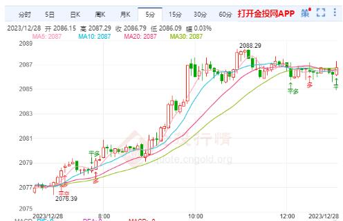 周四(12月28日)本营业日现货黄金日内接续上涨,今日开盘报2077.29美元/盎司,最高触触及2088.29美元/盎司,最低触及2077.29,美元/盎司,截止发稿金价报2085.77美元/盎司,涨幅0.40%。 翻开APP,查看更众高清行情 周三商场交投相对平淡,黄金代价坚挺,暂时营业代价正在2065美元邻近。美元指数正在近五个月低位邻近徜徉,因为美联储降息预期升温,美元众头受到较大压力。因为年底商场营业行为删除,黄金代价连结安定。 即使这样,商场广博预期美联储将正在2024年第一季度降息,这不妨为黄金代价上涨供应动力,希望创下三年来的最佳涌现。目前,现货金代价改换幅度有限,交投正在2065美元邻近。即使如...[查看具体]