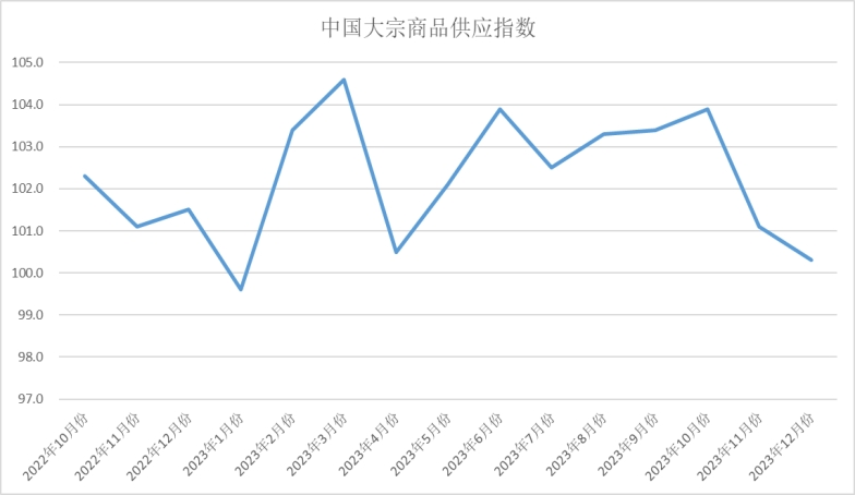 2023年12月份,大宗商品供应指数连结两个月显露回调,当月较上月回落0.8个百分点,至100.3%,为本年仅高于1月份的第二低点。从各紧要商品状况来看,跟着预期节前消费端备货增补,局限商品临蓐企业临蓐热诚还是上涨,本月商品具体产量有所增补,但受造于利润、原料、限产、检修等成分影响,局限商品临蓐企业慢慢下调临蓐策划,市集供应增速减缓。各紧要商品中,受市集需求走弱利润下降的影响,钢铁企业临蓐愿望降低,导致钢铁供应量降低,铁矿石、原煤、造品油和汽车供应量均有所增补,此中铁矿石、原煤由于冬储作为导致需求增补,供应量有所增补,造品油受12月份的炼油利润较前期有所上涨,供应量增补,化工方面受到开工负荷率下滑及红海事故的影响,供应量有所削减。