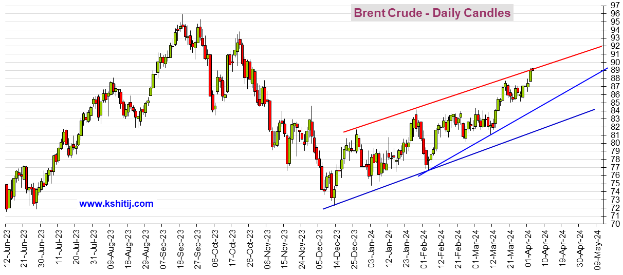 布伦特原油期货正试图打破89美元/桶阻力位。倘若决断性地打破89-90美元/桶,布油价值大概会涨向91-92美元/桶;不然,就不行摈斥布油价值跌向87美元/桶的大概性。