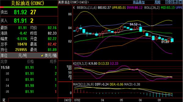原油及时行情领会:WTI原油周初延续下跌,目前4小时K线闭口,向下破位的几率极大。技艺面来看原油白盘的反弹幅度只要4个点,触及82.4就敏捷回落,刘铭诚看好行情跌破昨日低点82闭口就会加快下行。4小时附图目标上MACD疾慢线死叉,绿色能量柱赓续放量,KDJ随机目标同步死叉下探,破低看来仍旧成为定局。
