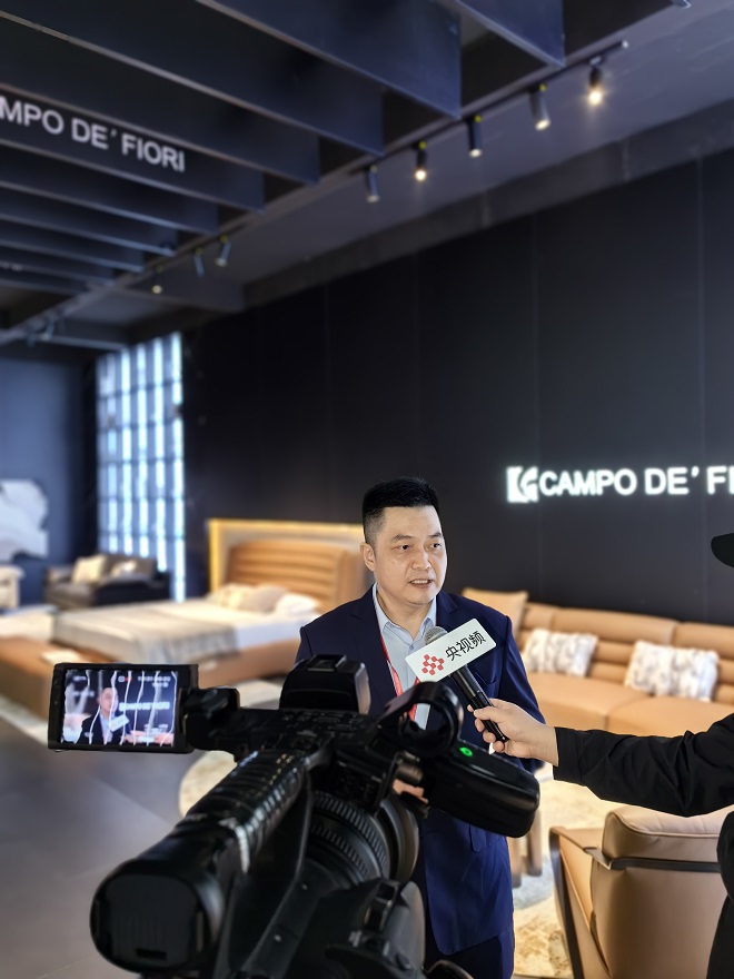 CAMPO DEFIORI槺柏家居与Egoitaliano两大出名品牌的联手参展,无疑正在家居安排舞台上掀起了一场视觉与灵感的盛宴。两边各自映现了正在该范畴的出众成就与创念,并且通过产物的创意交融与气派的激情碰撞,为观众揭示了一种前所未睹的家居生存艺术。这种将艺术与文明水乳交融的安排理念,凸显了两大品牌对家居美学趋向的尖锐洞察与引颈。两大品牌分袂接纳了广东电视台、央视、新浪、腾讯、网易等巨头媒体记者的现场采访。