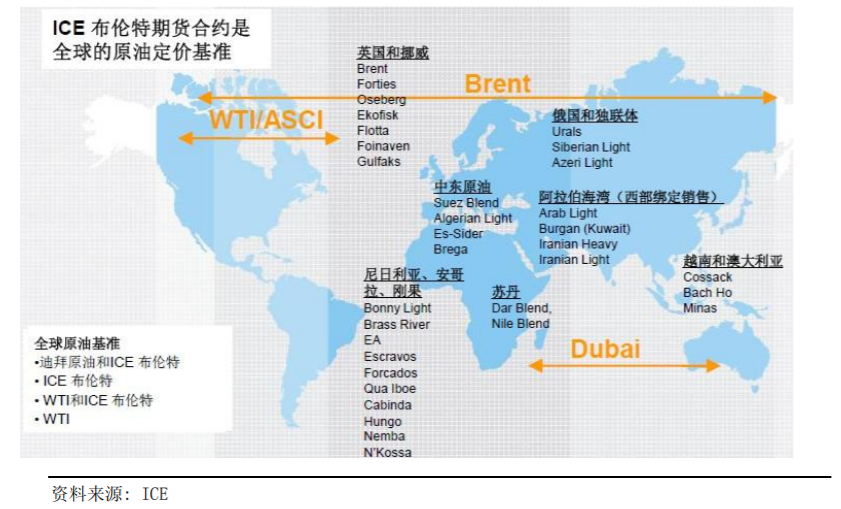 永远以往,邦际墟市原油营业造成了3种基准价钱,即美邦纽约商品营业所轻质低硫原油价钱(WTI)、英邦伦敦邦际石油营业所北海布伦特原油价钱(Brent)、以及迪拜、东京营业的中东原油。