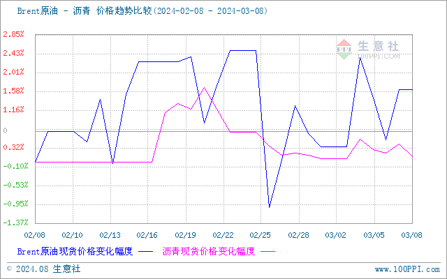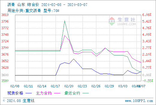 沥青主力合约2406开盘于3660元/吨,geny据生意社商人格情判辨体系,3月1日至8日,山东区域沥青价钱自3603元/吨上涨至3605元/吨,涨幅0.04%,环比上涨0.12%,同比下跌9.01%。如今沥青资源供应程度相对低位,沥青刚需回暖有限,南方局部区域受降雨气象影响,需求凡是出货放缓,局部炼厂库存压力较大,沥青商场合座商场交投氛围偏弱。