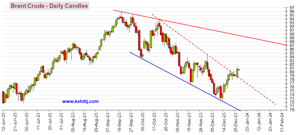 布伦特原油期货已回落至80美元/桶以下。可是,只消高于撑持位78美元/桶,那么布油价值仍有或许涨向84-85美元/桶。