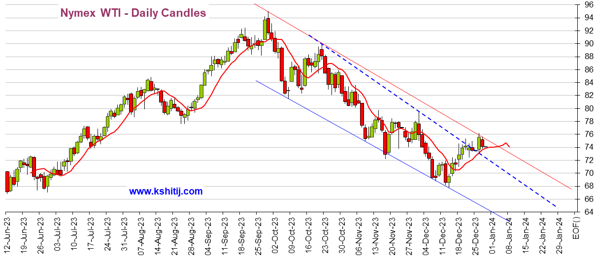 WTI原油期货下跌,未能冲破76美元/桶。撑持位正在72美元/桶。只消守住上述撑持,那么WTI油价仍有冲破76美元/桶并升向78-80美元/桶的空间。
