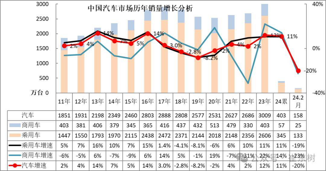 2019年累汽车总共销量2576.87万台,累计降8.1%;2020年累汽车总共销量2531万台,累计降1.9%;2021年累汽车总共销量2627万台,累计增速3.8%,终究告终正延长,高于2019年外示;2022年累汽车总共销量2675.57万台,累计增速1.9%;2023年累汽车总共销量3009万台,累计增速12.4%。