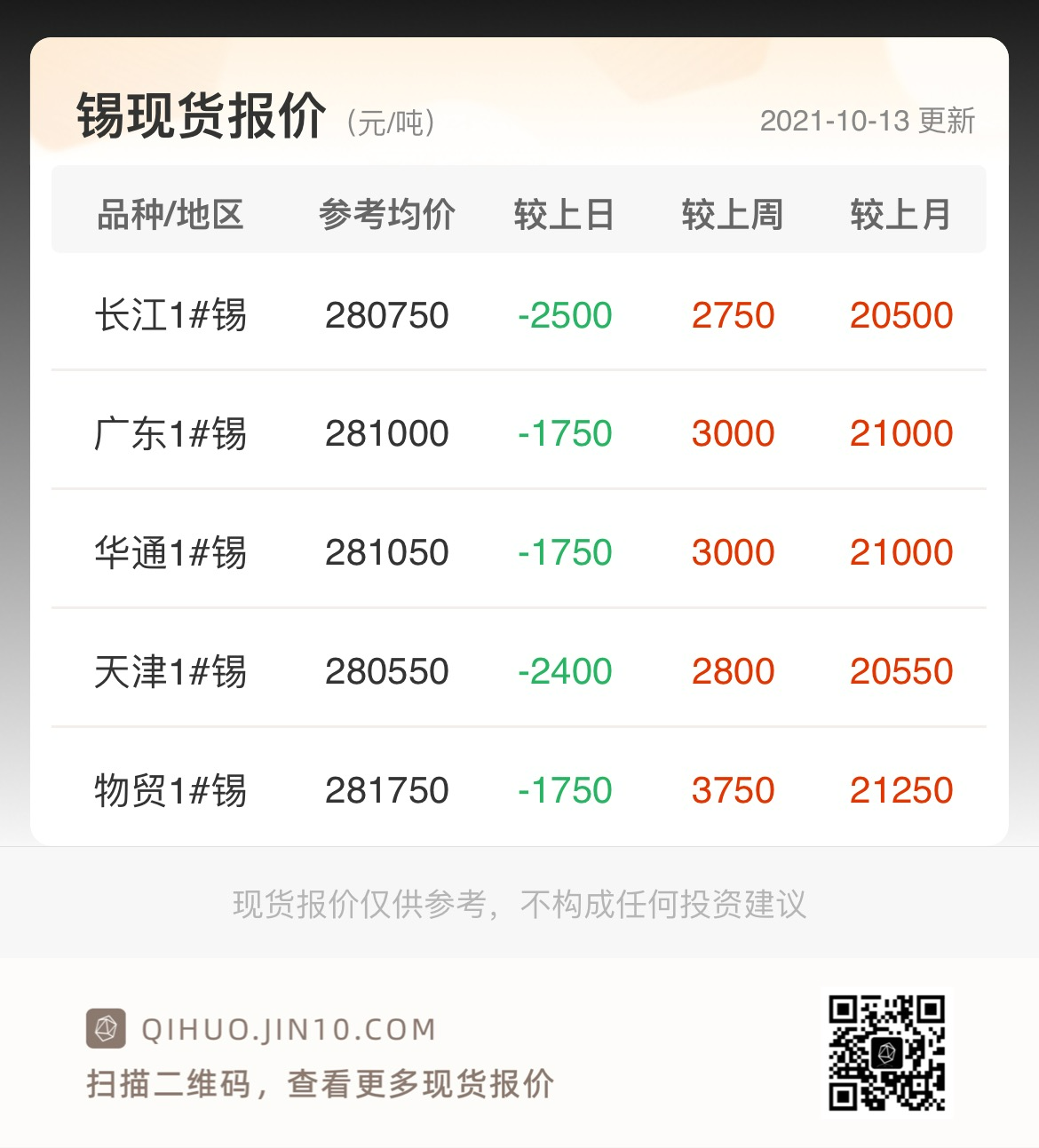 ①SMM统计9月份精练锡产量13018吨,较8月份环比削减4.70%,首要由于内蒙冶炼厂环保督察、广西炼厂受限片子响仍大。昨夜沪锡动摇走低,收跌0.87%至28077元/吨;LME锡走势动摇,收跌0.32%至36265美元/吨;现货墟市,升水报价较前一日略有上浮但幅度不大。
