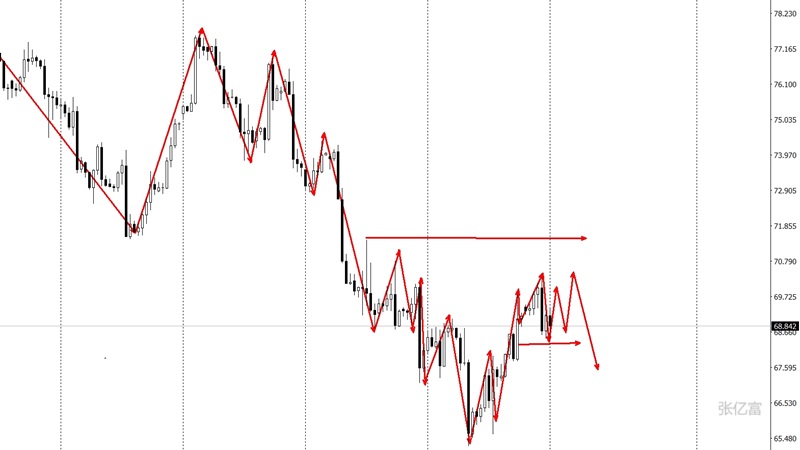 原油上周显现了先跌后涨走势,不才破新低之后显现了众头反弹走势,正在周线级别收录一根小阳线,带有肯定下影线,美中亏损的是尾盘收越过现了回落,进一步注明70.3一带如故有阻力位。本周核心便是油价是否可能延续,梗概率是一个区间徬徨走势。从短期趋向上看,油价正在78.511美元左近遇阻后,显现了一个空头ABC下跌样子,正在第三浪时显现了空头加快下跌,进一步下破了前期支持位70.8美元,最低点触及65.2美元左近,很显明空头下跌显现了加快,同时幅度又有点大,那么现阶段思粉碎这个偏空的方式,依旧必要有一个流程的,要未便是强势直接拉破,然则条件是上方71.4美元务必打破,再次之前阻力位打压如故创修。今日下方支持位核心体贴67.77秤谌。归纳以上理解,张亿富以为:原油触底反弹,然则后劲亏损,看看今日一调二反,今日操作上研商高空低众战术,上方体贴70.3-71.4美元阻力,下方体贴67.7-66.9美元支持。回撤幅度不行太大。