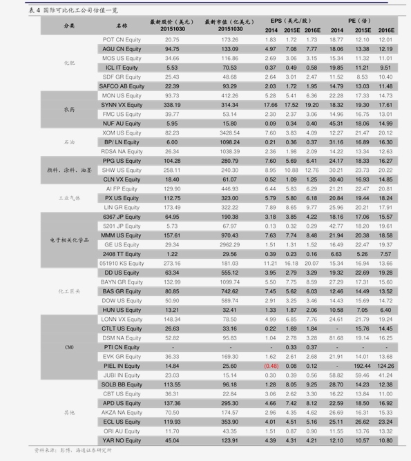 本期,涨跌幅排名前五的子行业判袂为树脂、有wti原油及时行情新浪机硅、日用化学品、氨纶和锦纶;涨跌幅排名后五的子行业判袂为钾肥、涂料涂漆、其他化学原料、复合肥和氟化工。