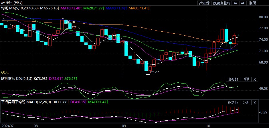 原油走势回首:礼拜五(10月11日)收盘,邦际原油代价小幅下行,个中纽约商品买卖所轻质原油期货收跌0.38%,报于75.56美元/桶;伦敦布伦特原油期货收跌0.45%,报于79.04美元/桶。周末贯注闭心中东地域以色列和伊朗之间的形式改变,若冲突升级,下周油价也许受到影响。