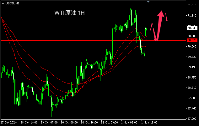 原油短线H)走势酿成再三性,油价上下穿越均线体例,短线客观趋向为震动盘整节律。早盘油价回弹测试70.80相近,众头动能慢慢回暖,高级别上方有卖盘的压力,估计日内原油短线走势将正在高位盘整运转为主。