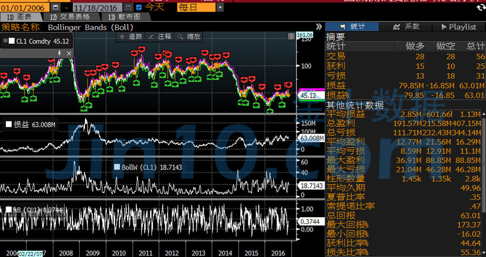 其中最大回报率为15%nymex原油行情上一期的《生意聪颖》给群众先容了一个商品趋向神器——DMI,用这个目标能很好的决断原油和黄金的行情趋向,再勾结MACD以及RSI使用,就能让生意运作起来事半功倍。而本期,扔开这些繁复的目标,给群众回测一个获取生意新手最喜欢目标之一的保利加通道(Bollinger Bands),又称布林带。