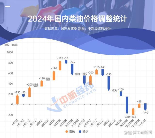本年今后,邦内油价已始末二十二轮调剂,划分为“九涨九跌四停滞”。涨跌互抵后,邦内汽、柴油价值每吨较去岁尾划分下跌130元和125元。若本轮调价如预期停滞,2024年造品油调价将展现“九涨九跌五停滞”式样。