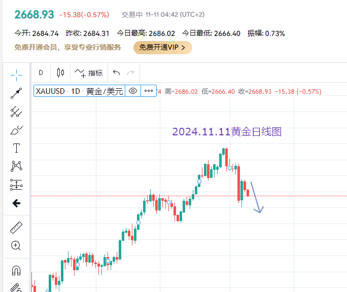 黄金上个营业日实体收阴,今日早盘开盘正在2683短线一线.若打破周五晚间高点则空头预防规避危急。(文中点位仅供分享交换,不做入市凭据),新的一周,祝同伴们营业顺遂。