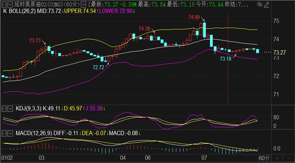 原油及时行情认识:昨夜原油触及74.9遇阻回落,周线长上影阴线控盘,日内原油价钱希望延续下行。身手面来看目前1小时布林带向下启齿,同时1小时和4小时图形SAR目标都浮现正在高位向下发散,压力渐渐下移,配合周线和日线都是阴K,寻常情景下还会去改进本周低点。