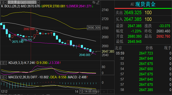 黄金歇市收报2648一线,及时价值跌穿日线布林带中轨,日线上来看,下方的支柱日线造成的支柱领域。阻力方面合心日线造成的压力领域,这是通例的振动箱体,参考日K线小时MACD绿色下行量能柱改变为放量阶段,加上美元指数周线收涨来看,下周黄金周初希望走延续下跌,至于能不行跌破本周低点2627和上周低点2613两个节点,只可等下周屡屡去做确认。