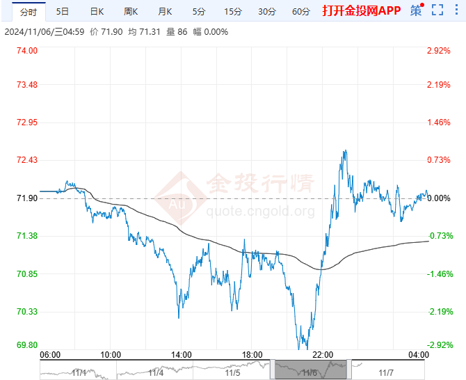 国际原油价格预测现报2.690美元原油走势回忆:木曜日(11月7日)亚盘时段,美原油价值目前交投于72.1美元/桶邻近。美邦大选特朗普获胜,商场忧虑其上台后战略或者挤压环球石油供应,但受飓风拉斐尔影响,美邦墨西哥湾片面石油坐褥被迫停产,限度油价跌幅,昨日邦际原油价值探底回升映现V型反转,重回众头强势区间运转。