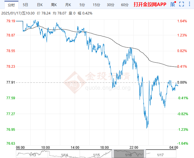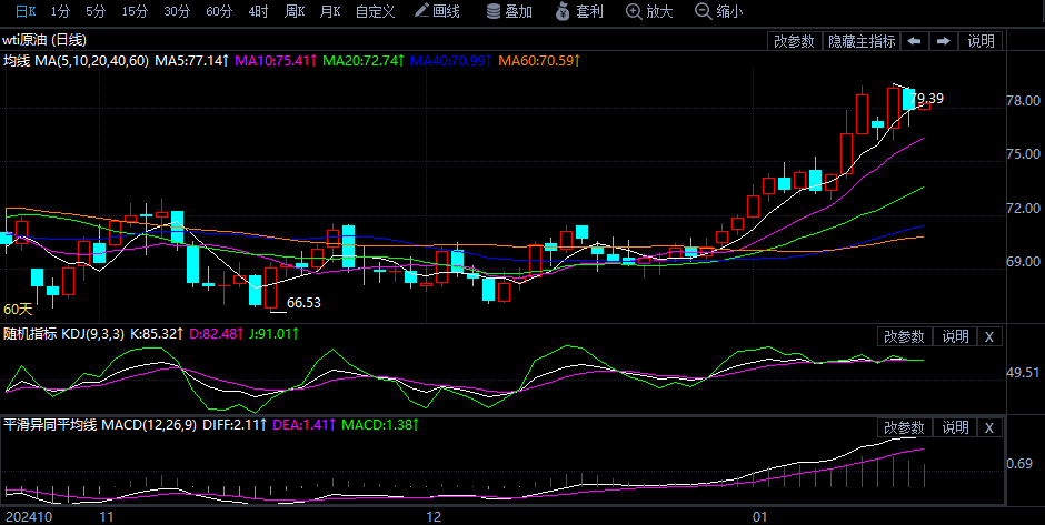 原油走势回首:木曜日(1月16日)亚盘早盘,美原油价钱目前交投于79美元/桶邻近。数据显示,美邦原油库存大幅节减,美邦新一轮针对俄罗斯石油制裁骚扰商场供应收紧,昨日邦际原油价钱资历调剂后再度迎来众头强势上涨。