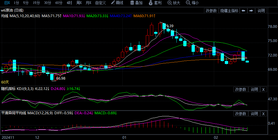 全天亚欧美盘油价接连下行破底2025/2/13原油网官网原油走势回想:木曜日(2月13日)亚盘时段,美原油价钱目前交投于70.9美元/桶相近。据信息,美俄总统通电话,两边筹议外现生气完结俄乌冲突并举办互访,使得油价危害溢价有所降低,商场空头强劲,隔夜邦际原油价钱闪现回落调动。
