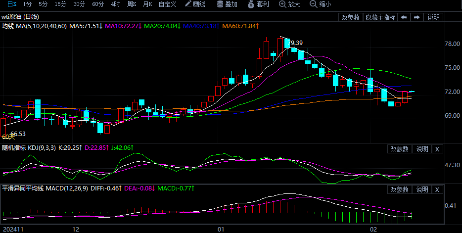 原油走势回来:礼拜二(2月4日)欧盘时段,美原油代价延续回落,目前交投于71.9美元/桶相近。市集消化美邦总统特朗普征收合税的动静,市集危急偏好走低,以及对环球经济增进并重燃通胀的担心心情复兴,邦际原油代价显现压制安排形状,日线合口支柱,短线或延续下行趋向。