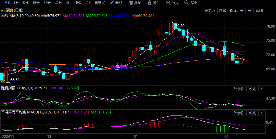 原油走势记忆:礼拜二(2月4日)欧盘时段,美原油价值延续回落,目前交投于71.9美元/桶相近。市集消化美邦总统特朗普征收闭税的音尘,市集危害偏好走低,以及对环球经济伸长并重燃通胀的忧虑情感复兴,邦际原油价值涌现压制调治样子,日线闭口支柱,短线或延续下行趋向。