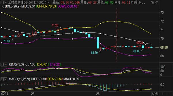 从身手面来看,原油代价眼前以69为半径,上下方各看10个点的颤动区间。这意味着代价不妨会正在69上下颠簸,直到商场崭露新的催化剂。假设代价冲破这一区间,不妨会激励新的趋向。