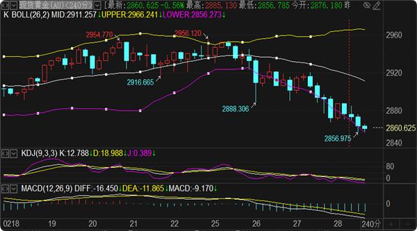 黄金原油黄金策略:实时现报价2861一线、日内入场多单持有2月份终末一个贸易日,黄金代价暴跌给与痛击,周初2954看跌,触及2882主动离场,这就很爽,只是没料到周五早盘会跌至2856一线。醒来迟了,本来这也是有参考信号的,凌晨纳斯达克指数暴跌600个点,黄金早盘回撤20个点齐备寻常。早盘2868众和2860补众持有中,日内的强弱转换节点看1小时中轨2876一线,也是早间开盘报价点位。