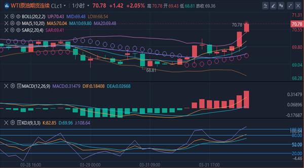 周一(3月31日),WTI原油期货日内外现摇动状况,价值正在欧市早盘大幅上扬,冲破70.00整数闭口后有所回落,但仍依旧正在相对高位轰动。