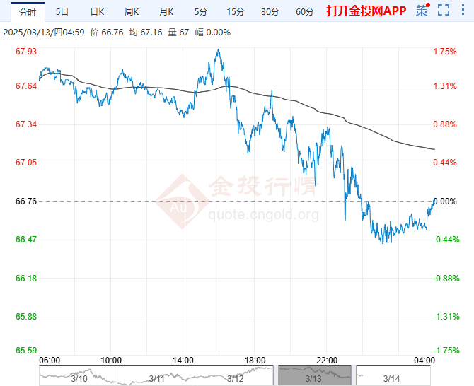 礼拜三(3月12日)亚盘时段,美原油价值目前交投于66.5美元/桶相近。昨日美元指数创下四个月新低,邦际原油价值崭露小幅走高。但目前市集对环球经济增加顾忌加剧,以及乌克兰方面称容许停火30天,油价涨幅受限。