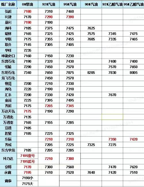 国内汽柴油价格最新调整726山东地炼今日报价东营区域昨日92#邦六汽油报价8100—8320,每吨均匀跌落了50元。0#邦六柴油报价7480—7590,每吨均匀跌落了70元。